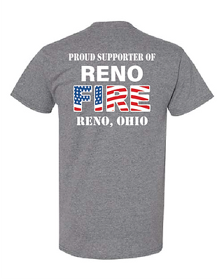 Show your support for the Reno Volunteer Fire Department by purchasing one of our specially designed t-shirts, available in two options: with or without a sleeve logo. Not only will you look great, but you'll also be contributing to a vital cause. Proceeds from every sale go directly toward funding essential equipment, training programs, and other critical needs for our department.